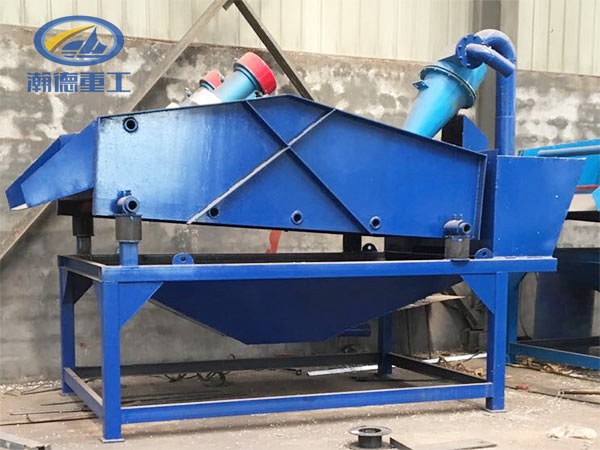 2、細(xì)砂回收系統(tǒng)工作過程:將砂水混合物輸送至旋流器離心分級(jí)濃縮的細(xì)砂經(jīng)深砂嘴提供給振動(dòng)篩經(jīng)振動(dòng)篩脫水后,細(xì)砂與水的有效分離,少量細(xì)砂、泥等經(jīng)返料箱再回到清青洗槽,清洗槽液面過高時(shí),經(jīng)出料口排出,直線振動(dòng)篩回收物料重量濃度為70- 85%調(diào)節(jié)細(xì)度可通過改變?nèi)棉D(zhuǎn)速、改變砂漿濃度、調(diào)節(jié)溢流水量、更換出砂嘴來實(shí)現(xiàn)。從而完成清洗、脫水和分級(jí)三種功能。